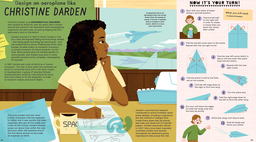 In This Book Will Make You a Scientist, there's profiles of 25 scientists from 3000 years ago till the modern day, all different areas of science and alongside each of those biographies, there's an experiment that you can do related to that person, but with household materials. So extracting DNA, making perfume, measuring the speed of light, looking at rainbows, training like an astronaut, all sorts of things.