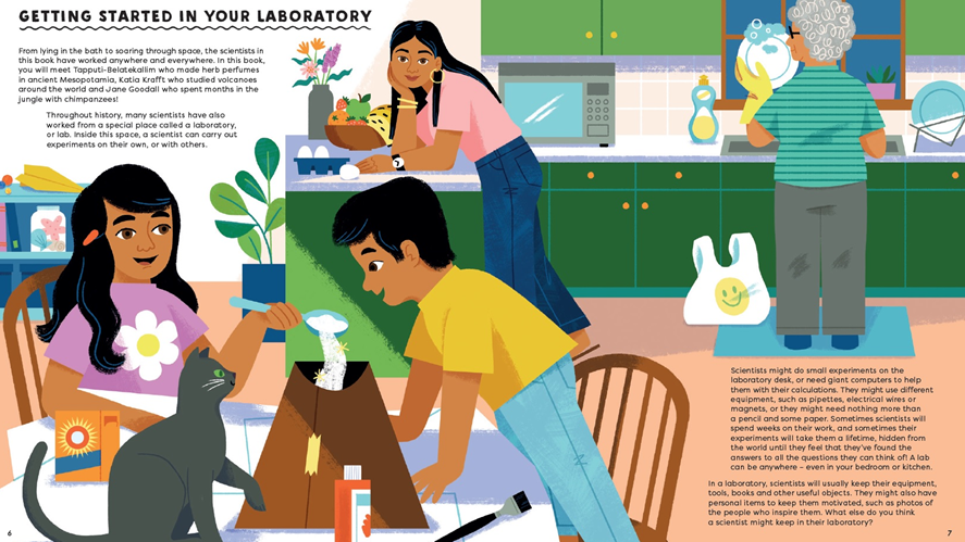 I love the illustrations by Ellen Surrey. I think they're stunning. They're inclusive, they're cute, they're funny. They're obviously historically accurate too. What I really like is that Ellen has thought in a diverse way as well. So the children doing the experiments in the book aren't just of one demographic and there's also intergenerational groups and there's children in wheelchairs and different colour skin and different types of hair and different ages and things like that. I think her illustrations really support the information in the book that anyone can be a scientist.