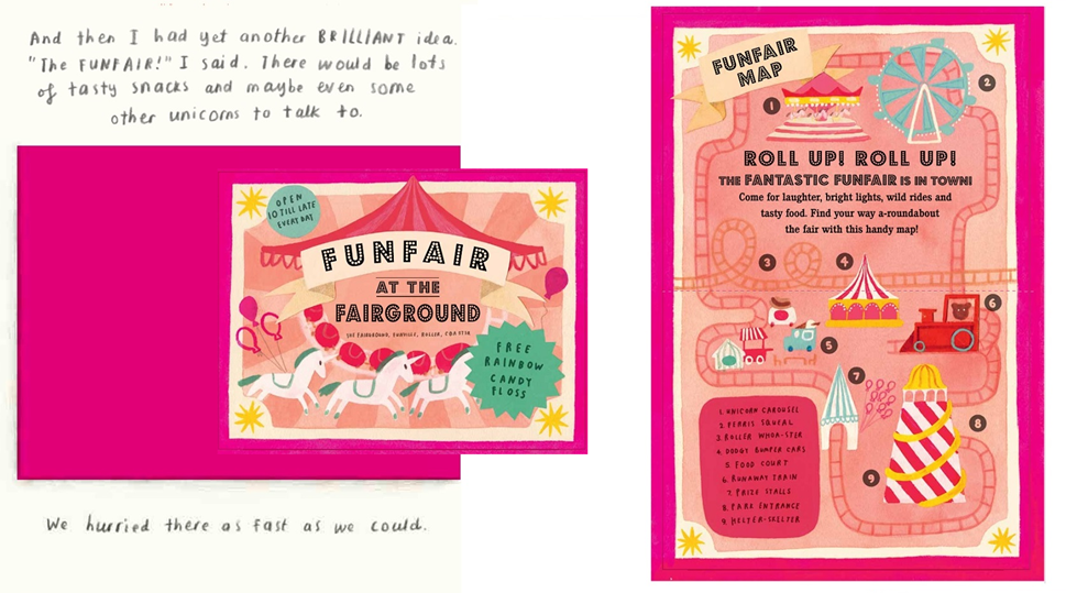 After working out that the unicorn is obviously in desperate need of help to find a new place to live (and after having a biscuit), they set out on a quest to find the perfect unicorn home. This book features lots of interactive leaflets, invitations, maps and coupons that show the potential of all of her wild ideas - ending with one piece of very special unicorn post.