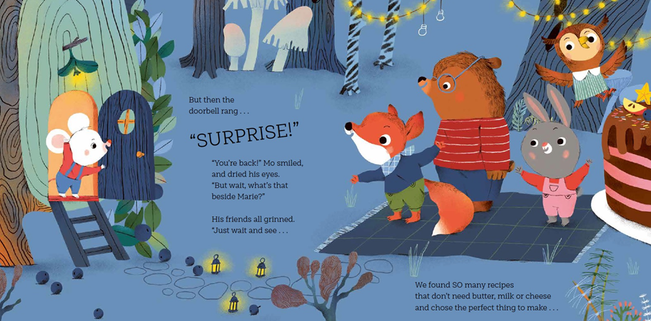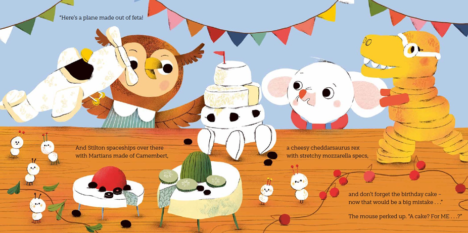 No Cheese Please! is about a little mouse called Mo, who is allergic to cheese. When his well-meaning friends bring cheese-based gifts to his birthday party, Mo has to politely decline (and then have a little cry). Can his friends make it up to Mo and find a way to save his special day?!