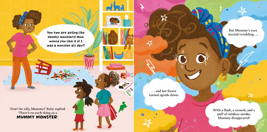 I had already formed a lot of the scenes in my head for this book, so I started there. I drew out the kind of arguments that the children would have and then built the characters and their world around that. I wanted a fun and cheeky monster that was approachable and silly, but was also linked to Mummy.
