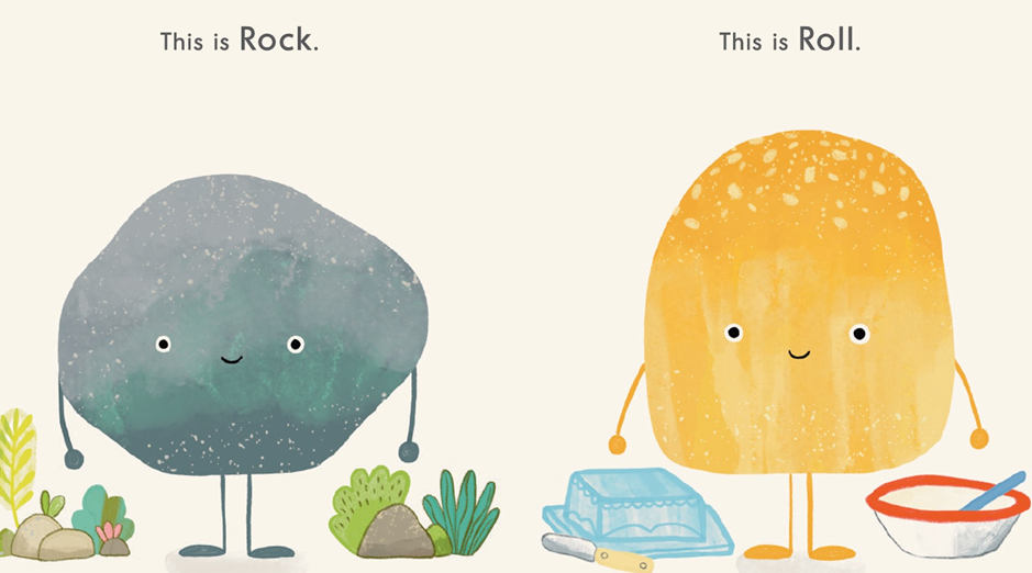 3. What inspired you to bring together a rock and a roll in a story? Was it challenging creating such a simple text with some quite complex ideas?