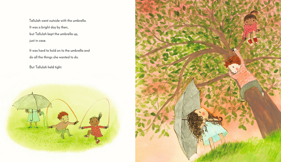 When the rain spoils Talulah's dress and makes her favourite biscuits go all soggy, it ruins everything. So she decides to protect herself against it. Armed with an umbrella, she feels better for a little while, even though she is not able to join in with some of the things her friends are doing. Soon she feels that one umbrella is simply not enough, so she has two . . . and then fashions herself an umbrella house so that she is completely protected. But although she is now safe, Talulah can't help feeling that she is missing out on everything that is happening outside her umbrella house…