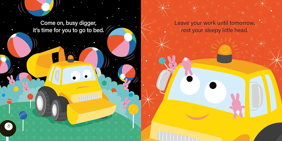 It's bedtime for Little Digger and friends as the sun sets and the stars start to twinkle. As all the other vehicles make their way home, Little Digger isn't ready to finish work just yet, but even little diggers need to rest so that they can get up bright and early and do their very busy best!