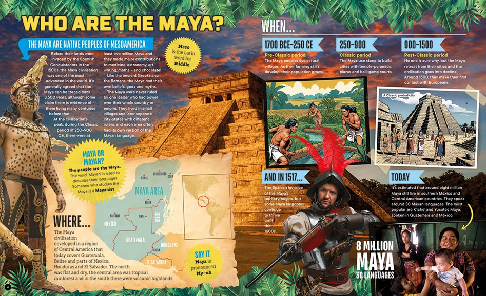Visit the incredible buildings of the Maya's magnificent cities, many of which still stand today. Discover how the Maya made groundbreaking advances in farming, astronomy, mathematics, and writing, long before the Western world. Filled with fascinating facts and head-spinning mythology, kids will discover an adventurous world full of fearsome gods, brave heroes and unbelievable knowledge in this graphic guide.