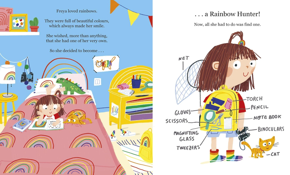 Freya loves rainbows. She loves their bright colours and their curvy shape. More than anything, she wishes she has one of her very own. One that she can keep forever. So she decides to become a Rainbow Hunter!