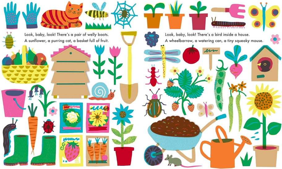 Look, Baby, Look! Outside is a super bright and colourful lift-the-flap book for baby to explore. On first impression I was a bit thrown by how busy the pages were, but my baby loved this. While it took some time for him to find the flaps to lift, he loved looking at all the colours and items on each page, with simple rhyming text for me to read to keep him engaged. I can see the book being well-loved as he gets older and starts to understand words, and it will make an ideal search and find activity.