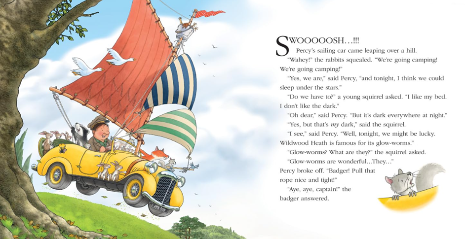 Percy the park keeper has turned a rusty old car into a "sailing car", powered by the wind! To celebrate, he drives his animal friends away from the park to camp beneath the stars. But after a wonderful evening, as everyone is starting to settle down, they discover that Percy's car has rolled into a pond! Whatever will they do? Perhaps, Percy's old friend Randolph the reindeer can come to their rescue?