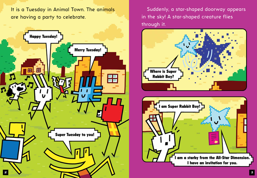 "Video games meet graphic novels in this new series about Super Rabbit Boy, a character in the fictional game of Animal Town who must stop the fun-hating King Viking." - The Bookseller