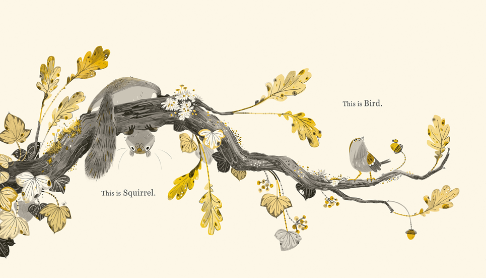 Squirrel and Bird is a beautifully illustrated story about identity and our perceptions of others. We're told repeatedly in the book that Squirrel is loud and Bird is quiet, Squirrel is busy, Bird is not… but look closer on the page, and you'll find things aren't quite as we're told!