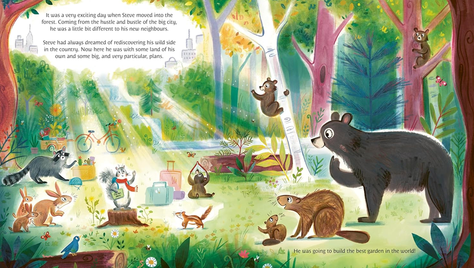 Steve is a city squirrel. He's got style, he's cultured, he knows what he likes. But for a while now he's felt a call to the wild . . . So Steve packs up his things, says goodbye to city life and moves to the forest. He's got BIG plans: he's going to build the best garden in the world. He's got his vision in mind, his tools at hand, and his rules for visitors ready. So, why don't the forest folk seem to enjoy his garden as much as he does?