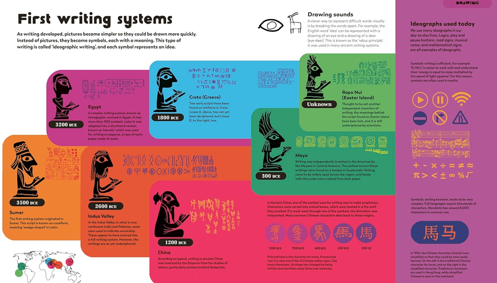 This history of information is closely connected to the history of visual communication - and as these two are largely the same - it makes sense to tell this story visually: a history of graphics told through graphics. The History of Information, through a mix of timelines, graphics, and illustrations, clearly breaks down and explains each concept for children and adults alike.