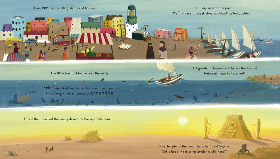 A talking dog. A jewelled casket. A quest for stolen treasure... Join Sophie on a magical Egyptian adventure. Lift the flaps and peep through the die-cuts to help her save King Nebra and solve the mystery of the golden pyramid.