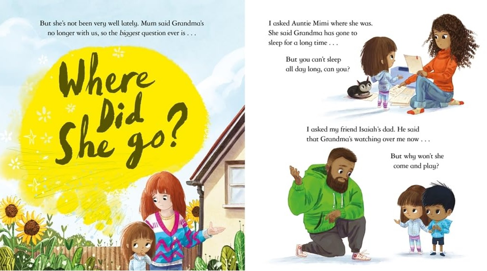 When a little girl loses her very special grandma, she has just one question: Where did she go? She searches everywhere , under the sofa, behind the flower patch, even in their favourite spot in the park, but Grandma isn't there. With the help of her mum, however, she begins to understand what it means to say goodbye, and how memories can keep someone we love close, even when they're gone.