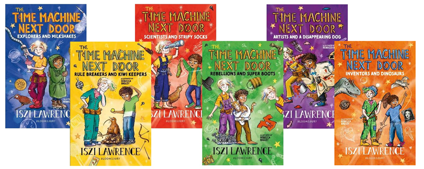Here are more books in the series to try out: The Time Machine Next Door: Explorers and Milkshakes; The Time Machine Next Door: Rule Breakers and Kiwi Keepers; The Time Machine: Scientists and Stripy Socks; The Time Machine Next Door: Rebellions and Super Boots; The Time Machine Next Door: Artists and a Disappearing Dog; The Time Machine Next Door: Inventors and Dinosaurs
