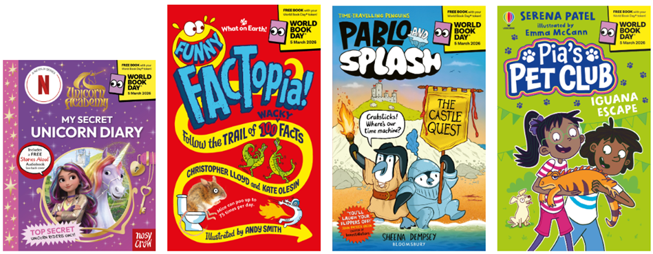 The line-up of £1/€1.50 books for 2026 that children can choose for free with their £1/€1.50 book token has been announced, including books for beginning, early, fluent and independent readers. Alongside the 12 titles available across the UK, there are three books for Ireland and a World Book Day Welsh title.